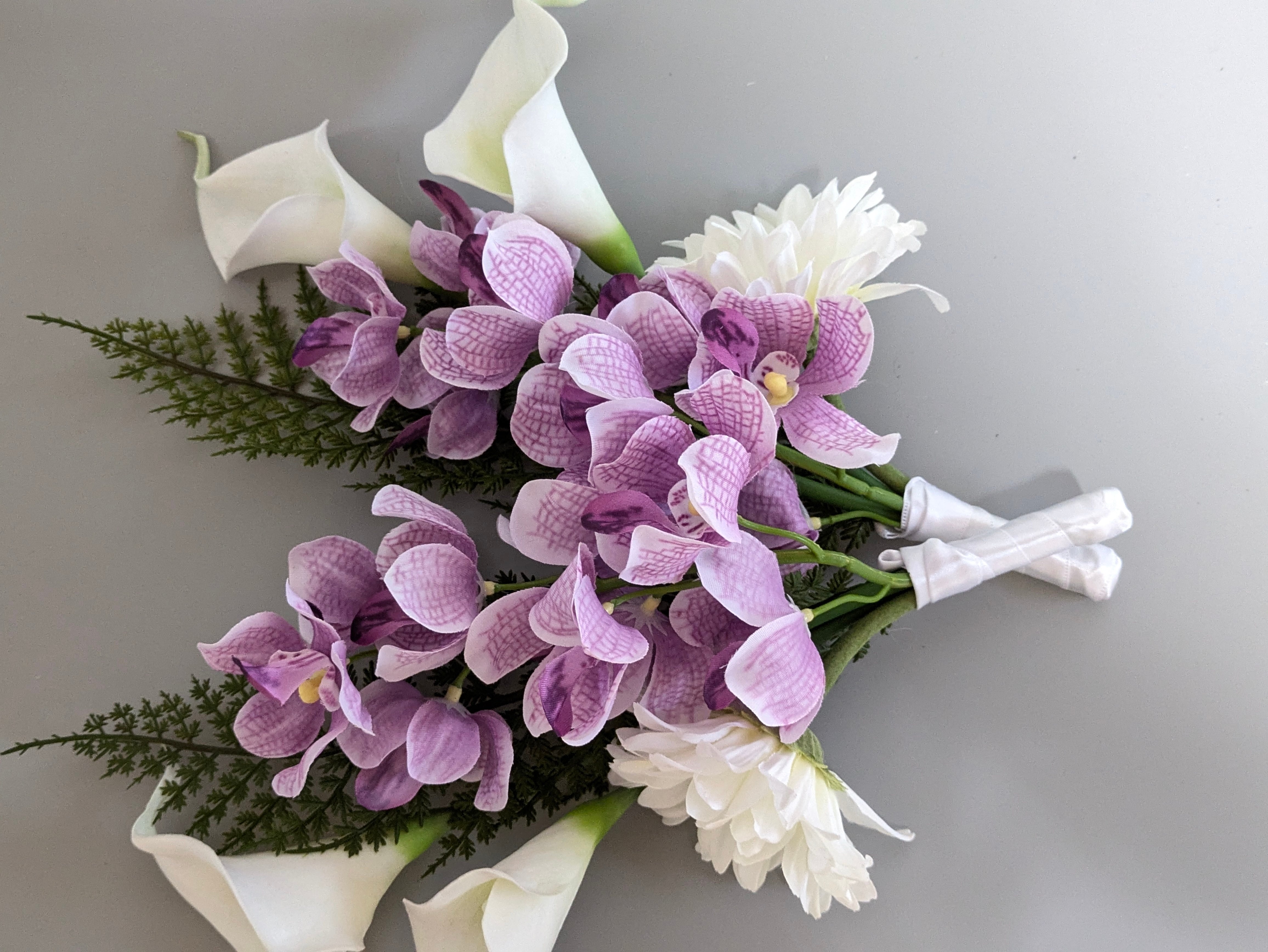 YSアウトレット 高級造花 シンプル仏花対アレンジ リオオーキッド 紫 花瓶別売