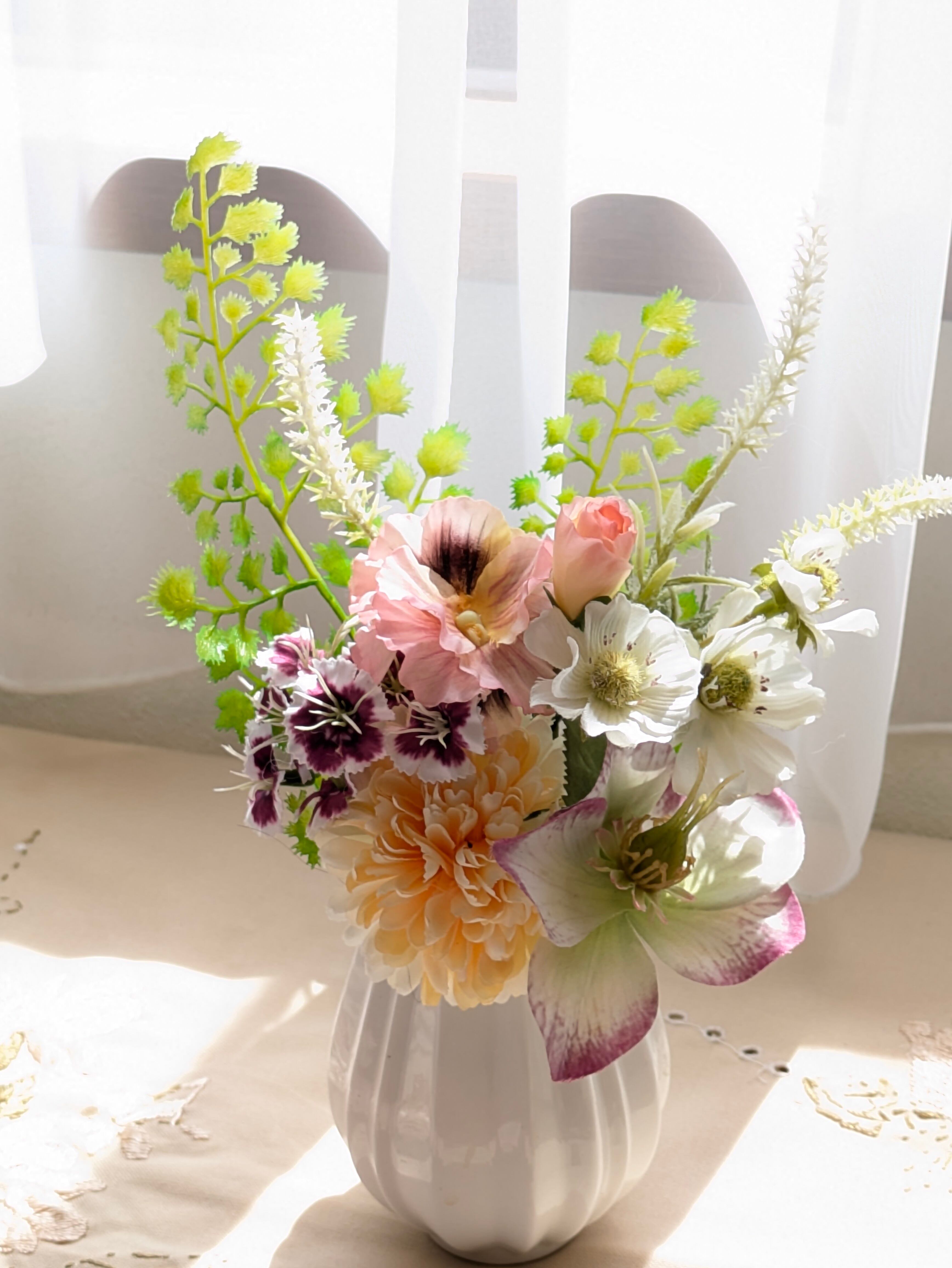 高品質アーティフィシャルフラワーブランド【結の綵花】では、国内メーカーの高品質な花材を厳選し、生花と見間違うほどの美しさを持つお花(造花)アレンジをご提供します。視覚的にも十分な華やかさと癒しを感じていただける仕上がりです。