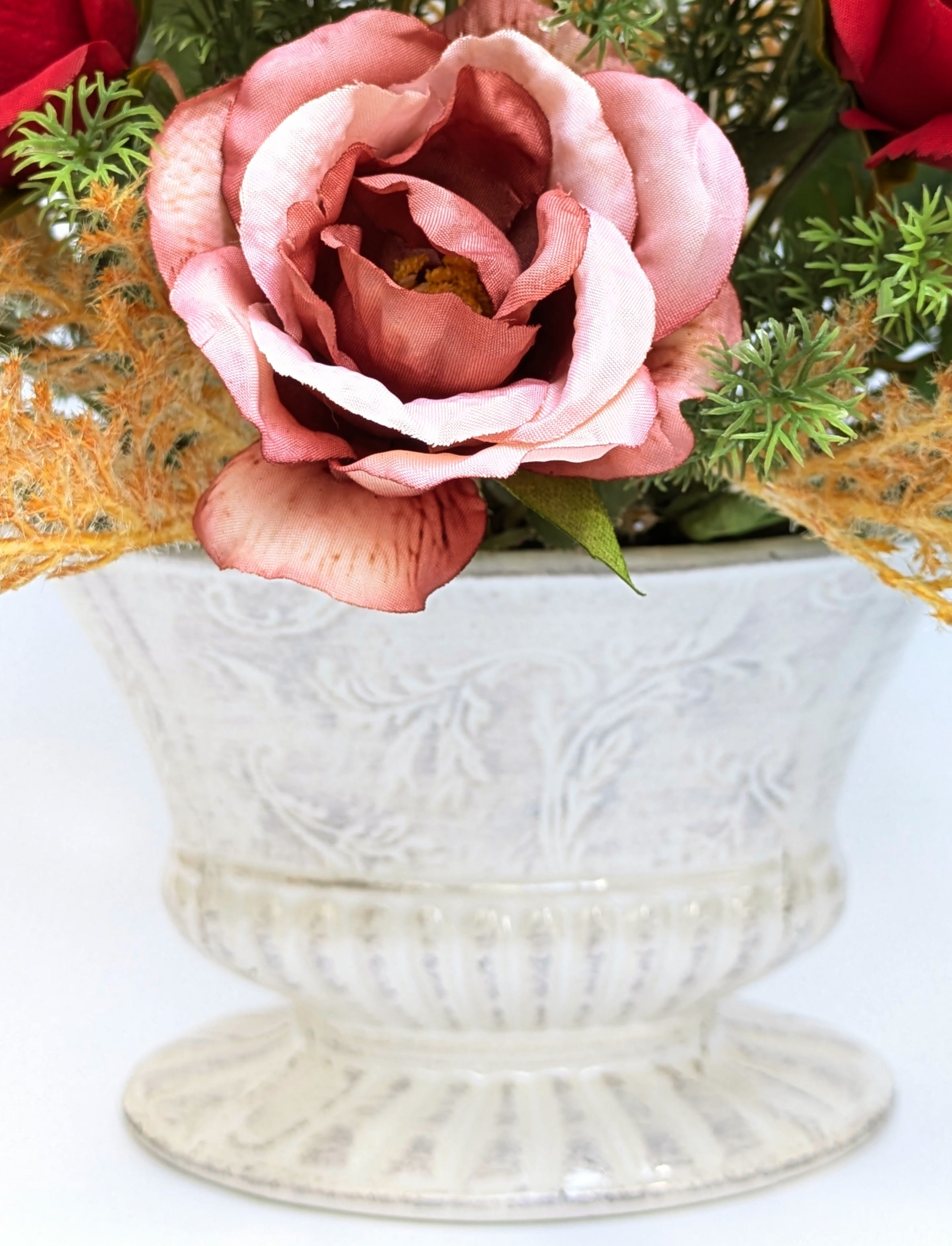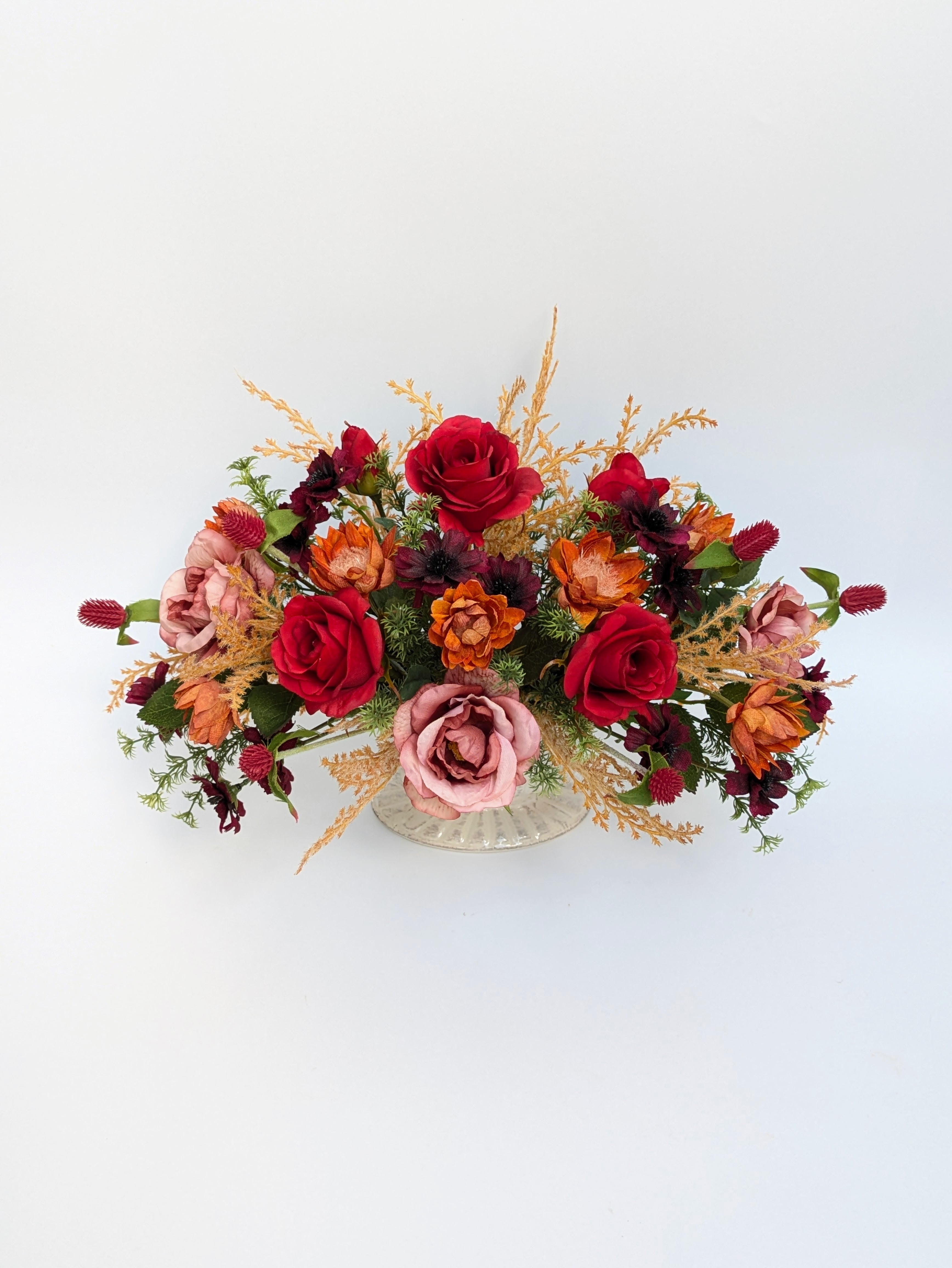 アーティフィシャルフラワー(造花):薔薇2種、セルリア、コスモス、センニチコウ、ススキ、グリーン
