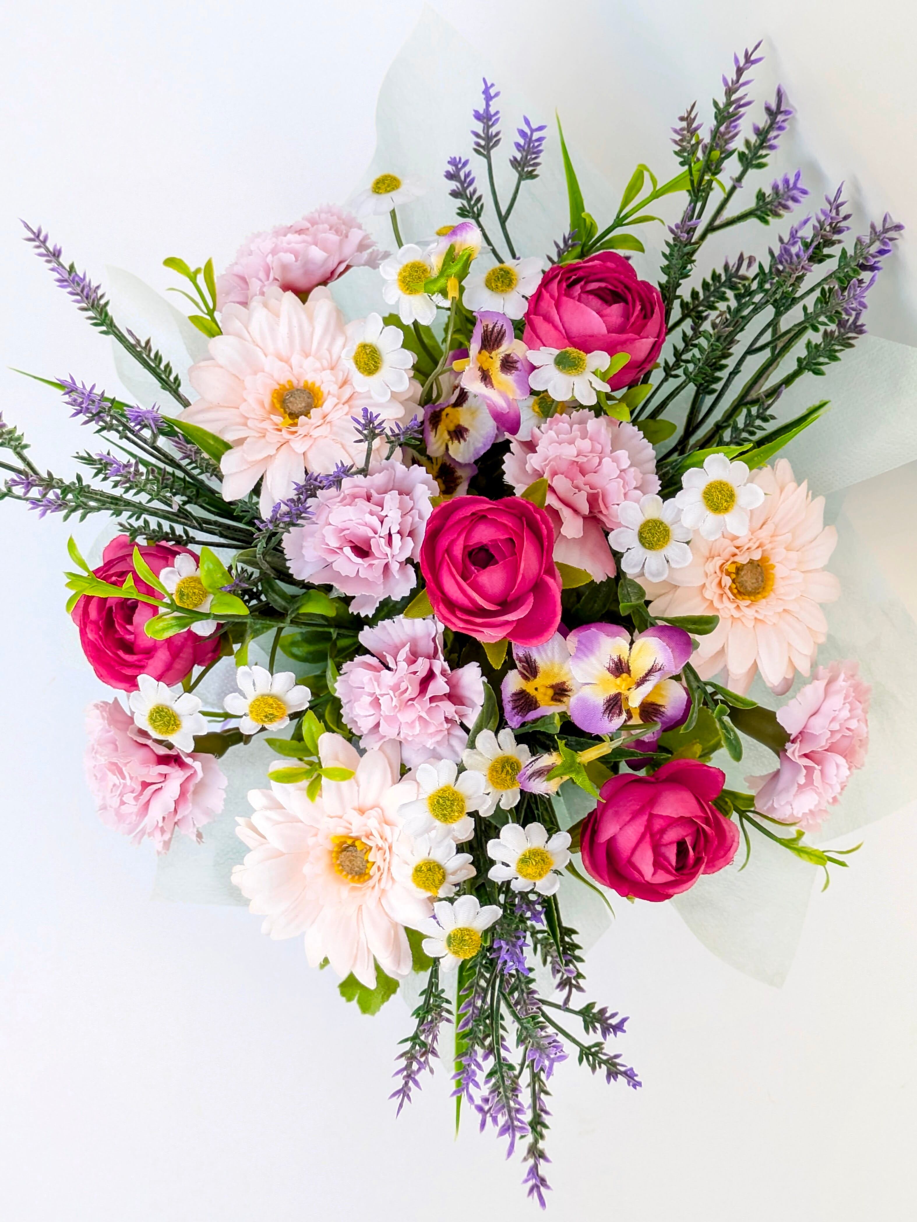 アーティフィシャルフラワー(造花):パンジー、ラナンキュラス、ガーベラ、カーネーション、マトリカリア、他