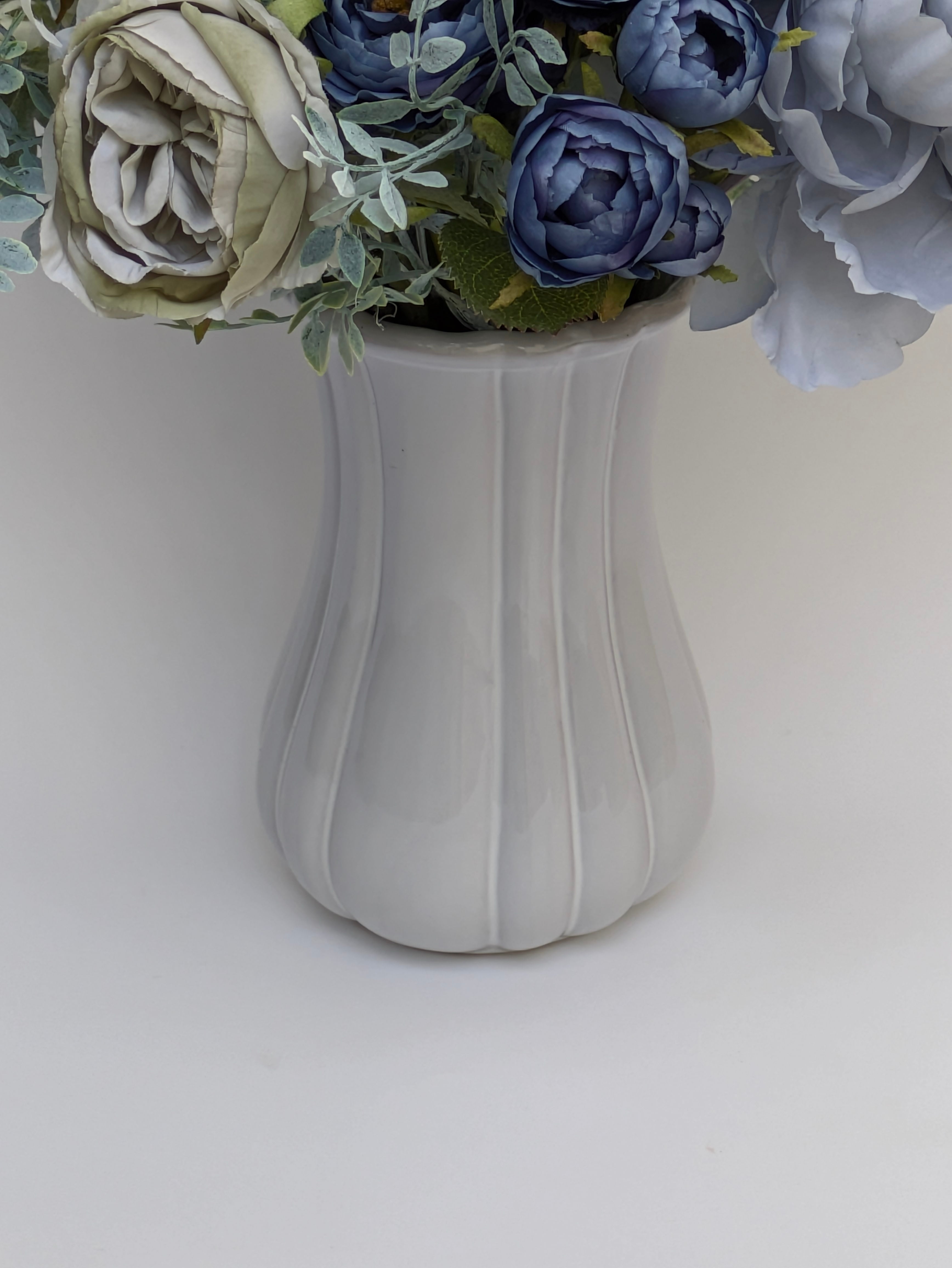 高級造花 モダンなグレイッシュブルーのインテリアフラワー L